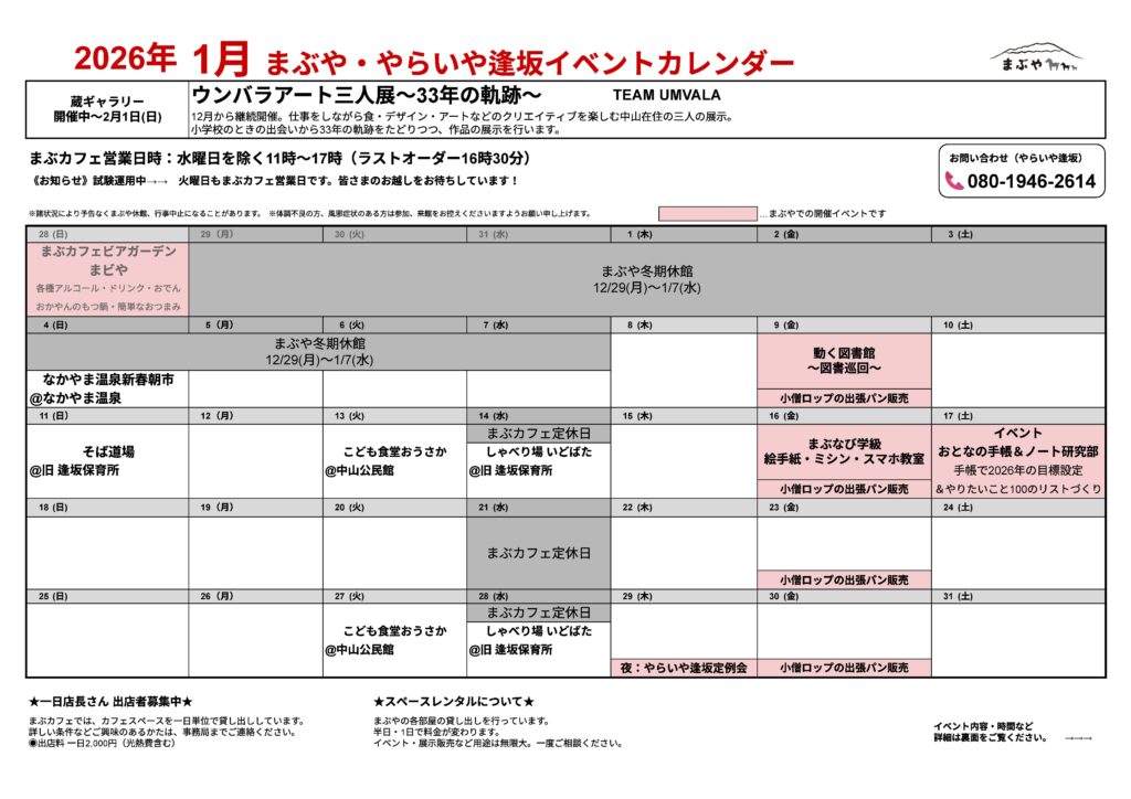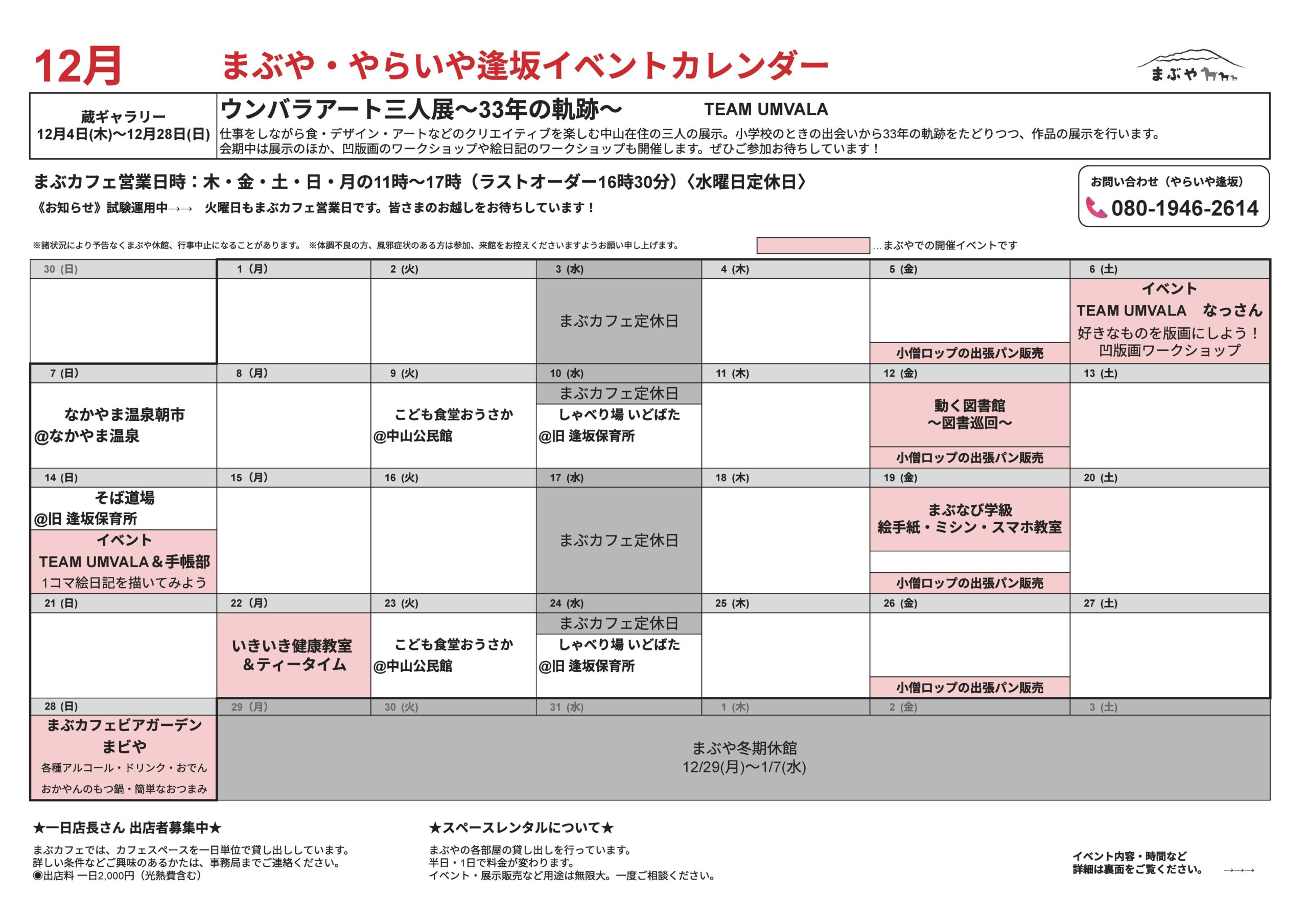 各イベントの開催状況・毎月のカレンダーなどを投稿しています。
