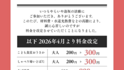 お知らせ やらいや逢坂 一部事業の料金改定のお知らせ いつも やらいや逢坂 の活動にご参加いただき、ありがとうございます。このたび、材料費や水道光熱費などの高騰により、誠に心苦しいのですが一部事業の料金を改定させていただくことになりました。2026年4月より、以下の通り変更となります。こども食... 2026.03.31 お知らせ